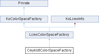 Inheritance diagram for CmykU8ColorSpaceFactory:Public Member Functions | |