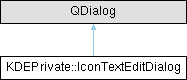 Inheritance diagram for KDEPrivate::IconTextEditDialog:Public Member Functions | |