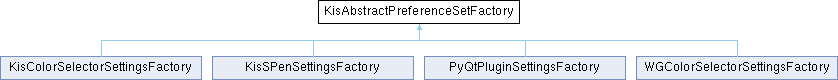 Inheritance diagram for KisAbstractPreferenceSetFactory:Public Member Functions | |