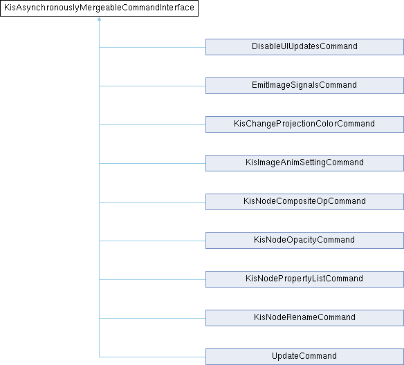 Inheritance diagram for KisAsynchronouslyMergeableCommandInterface:Public Member Functions | |