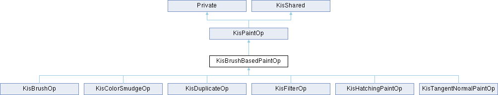 Inheritance diagram for KisBrushBasedPaintOp:Public Member Functions | |
