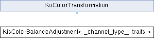Inheritance diagram for KisColorBalanceAdjustment< _channel_type_, traits >:Public Member Functions | |