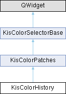 Inheritance diagram for KisColorHistory:Public Slots | |