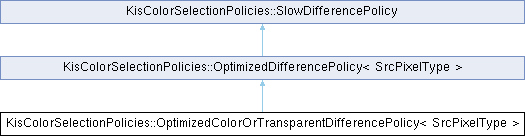 Inheritance diagram for KisColorSelectionPolicies::OptimizedColorOrTransparentDifferencePolicy< SrcPixelType >:Public Member Functions | |