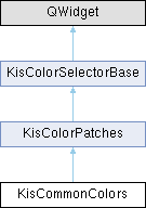 Inheritance diagram for KisCommonColors:Public Slots | |