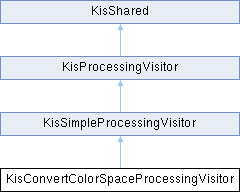 Inheritance diagram for KisConvertColorSpaceProcessingVisitor:Public Member Functions | |