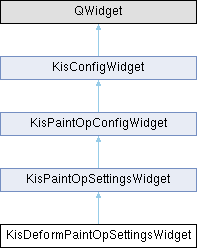 Inheritance diagram for KisDeformPaintOpSettingsWidget:Additional Inherited Members | |