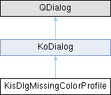 Inheritance diagram for KisDlgMissingColorProfile:Public Member Functions | |