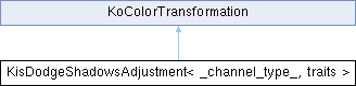 Inheritance diagram for KisDodgeShadowsAdjustment< _channel_type_, traits >:Public Member Functions | |