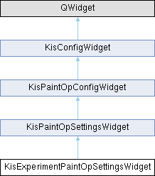 Inheritance diagram for KisExperimentPaintOpSettingsWidget:Additional Inherited Members | |