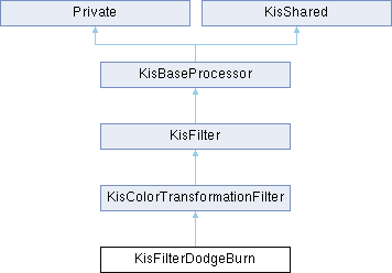 Inheritance diagram for KisFilterDodgeBurn:Public Types | |
