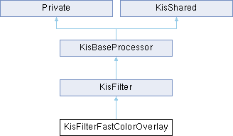 Inheritance diagram for KisFilterFastColorOverlay:Public Member Functions | |