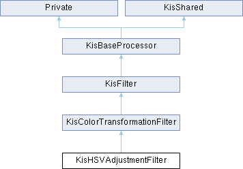 Inheritance diagram for KisHSVAdjustmentFilter:Public Member Functions | |