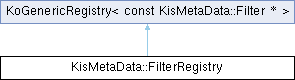 Inheritance diagram for KisMetaData::FilterRegistry:Public Member Functions | |