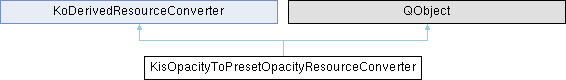 Inheritance diagram for KisOpacityToPresetOpacityResourceConverter:Public Member Functions | |