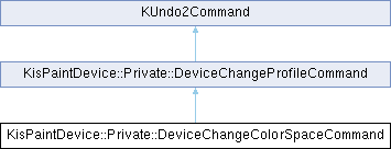 Inheritance diagram for KisPaintDevice::Private::DeviceChangeColorSpaceCommand:Additional Inherited Members | |