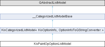 Inheritance diagram for KisPaintOpOptionListModel:Public Member Functions | |