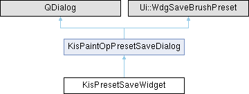 Inheritance diagram for KisPresetSaveWidget:Public Slots | |