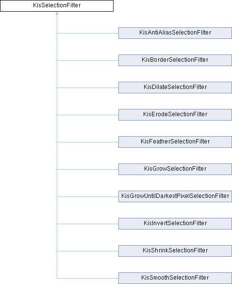 Inheritance diagram for KisSelectionFilter:Public Member Functions | |