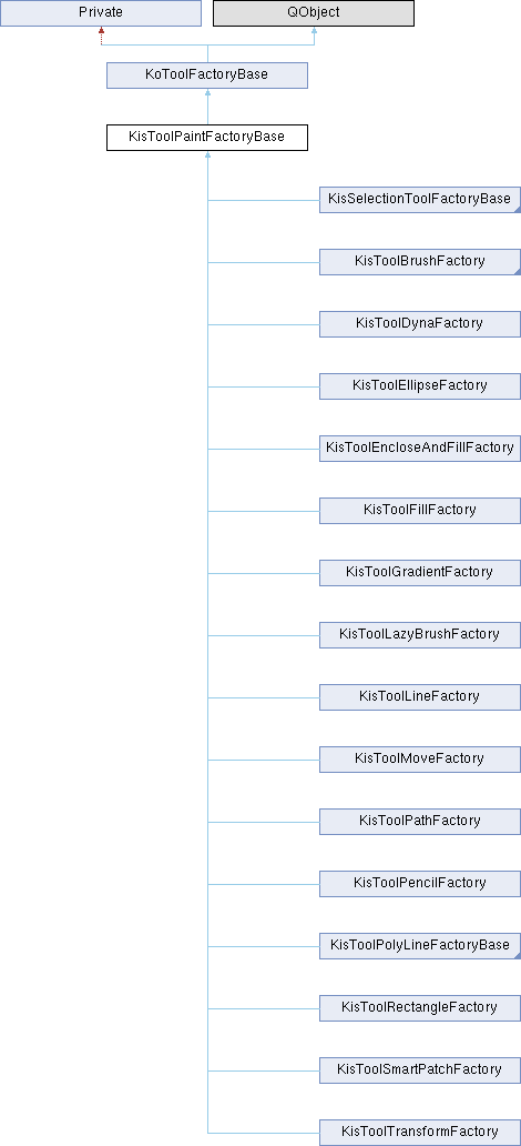 Inheritance diagram for KisToolPaintFactoryBase:Public Member Functions | |