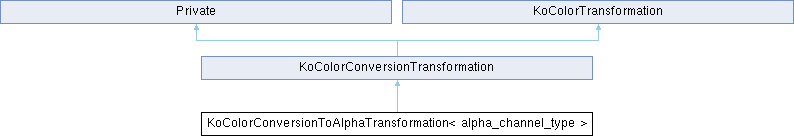Inheritance diagram for KoColorConversionToAlphaTransformation< alpha_channel_type >:Public Member Functions | |