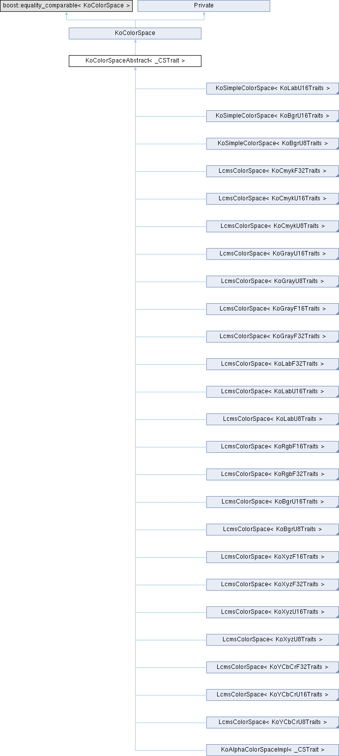Inheritance diagram for KoColorSpaceAbstract< _CSTrait >:Public Types | |