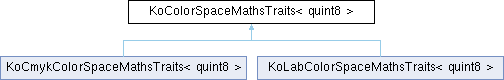 Inheritance diagram for KoColorSpaceMathsTraits< quint8 >:Public Types | |