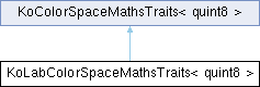 Inheritance diagram for KoLabColorSpaceMathsTraits< quint8 >:Static Public Attributes | |