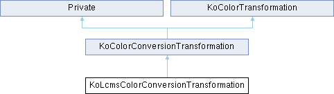 Inheritance diagram for KoLcmsColorConversionTransformation:Public Member Functions | |