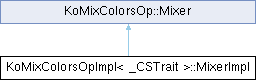 Inheritance diagram for KoMixColorsOpImpl< _CSTrait >::MixerImpl:Public Member Functions | |
