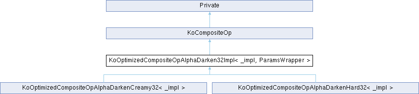 Inheritance diagram for KoOptimizedCompositeOpAlphaDarken32Impl< _impl, ParamsWrapper >:Public Member Functions | |