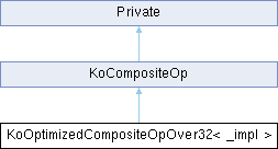 Inheritance diagram for KoOptimizedCompositeOpOver32< _impl >:Public Member Functions | |