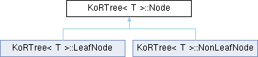 Inheritance diagram for KoRTree< T >::Node:Public Member Functions | |