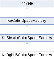Inheritance diagram for KoRgbU8ColorSpaceFactory:Public Member Functions | |