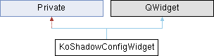 Inheritance diagram for KoShadowConfigWidget:Public Slots | |