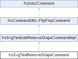 Inheritance diagram for KoSvgTextRemoveShapeCommand:Public Member Functions | |