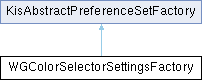 Inheritance diagram for WGColorSelectorSettingsFactory:Public Member Functions | |
