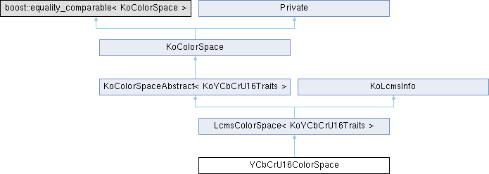 Inheritance diagram for YCbCrU16ColorSpace:Public Member Functions | |