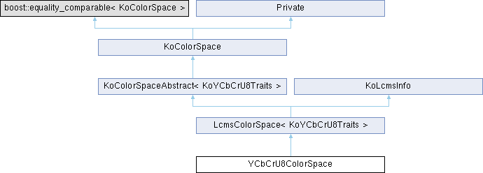 Inheritance diagram for YCbCrU8ColorSpace:Public Member Functions | |