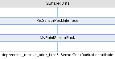 Inheritance diagram for deprecated_remove_after_krita6::SensorPackRadiusLogarithmic:Public Member Functions | |