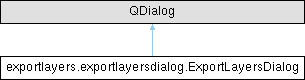 Inheritance diagram for exportlayers.exportlayersdialog.ExportLayersDialog:Public Member Functions | |