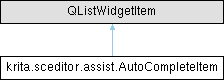 Inheritance diagram for krita.sceditor.assist.AutoCompleteItem:Public Member Functions | |