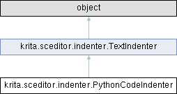 Inheritance diagram for krita.sceditor.indenter.PythonCodeIndenter:Public Member Functions | |