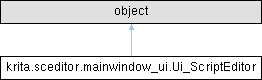 Inheritance diagram for krita.sceditor.mainwindow_ui.Ui_ScriptEditor:Public Member Functions | |