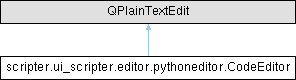 Inheritance diagram for scripter.ui_scripter.editor.pythoneditor.CodeEditor:Public Member Functions | |