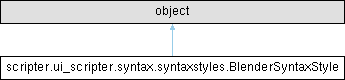 Inheritance diagram for scripter.ui_scripter.syntax.syntaxstyles.BlenderSyntaxStyle:Public Member Functions | |