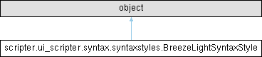 Inheritance diagram for scripter.ui_scripter.syntax.syntaxstyles.BreezeLightSyntaxStyle:Public Member Functions | |