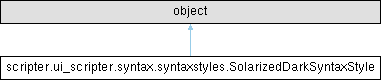 Inheritance diagram for scripter.ui_scripter.syntax.syntaxstyles.SolarizedDarkSyntaxStyle:Public Member Functions | |