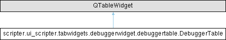 Inheritance diagram for scripter.ui_scripter.tabwidgets.debuggerwidget.debuggertable.DebuggerTable:Public Member Functions | |