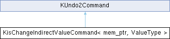 Inheritance diagram for KisChangeIndirectValueCommand< mem_ptr, ValueType >:Public Member Functions | |